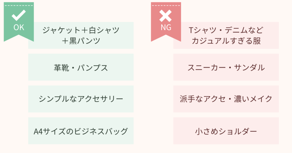 - 迷ったら「清潔感・無難さ・TPO」を意識すれば失敗しない