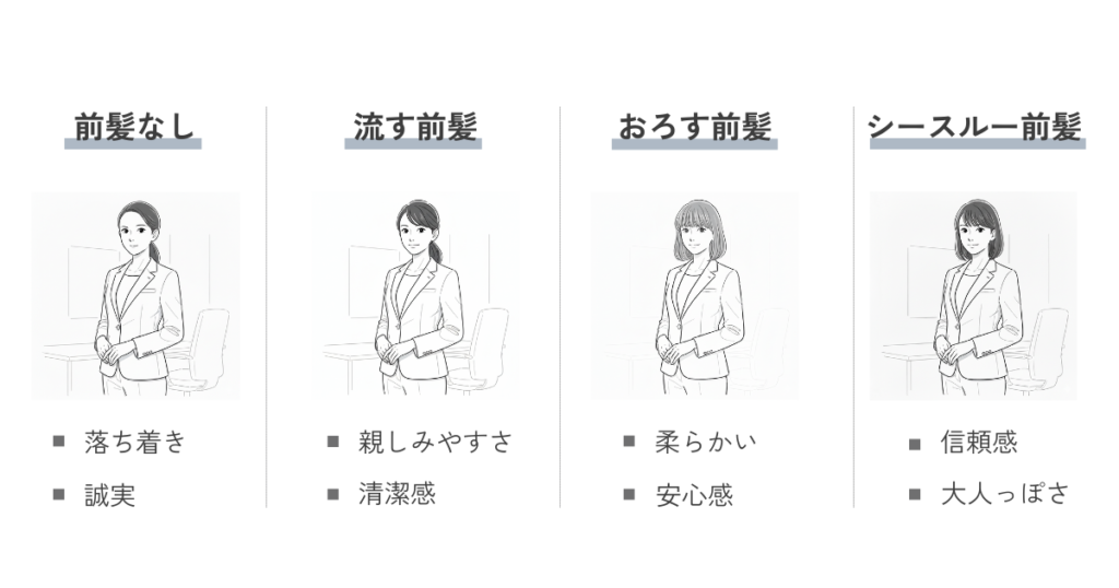 ここでは、代表的な前髪の種類ごとに、面接官が抱く印象や注意点を解説します。