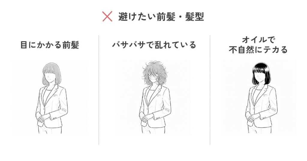 - 新卒の就活時と同じ前髪では幼く頼りなく見えるリスクがある