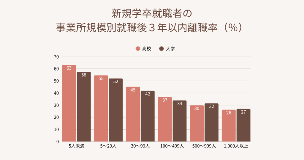 新卒の場合、社会人としての適応やキャリア形成の初期段階との事情が考慮されやすく、企業側も一定の理解を示す傾向があります。実際、厚生労働省の「新規学卒就職者の離職状況」では、3年以内の離職率が約3割〜4割とのデータが示されています。