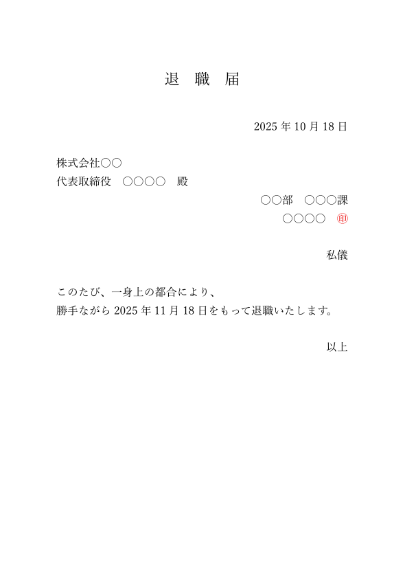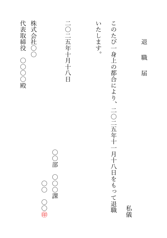 たとえば、提出日を「令和7年11月18日」と書いたら、退職日も「令和7年11月30日」と和暦で揃えます。「2025年11月18日」と西暦にしたら、退職日も「2025年11月30日」と西暦で揃えましょう。