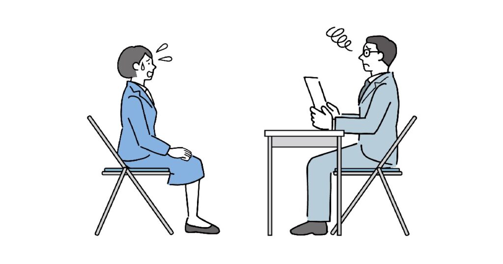 緊張すると早口になってしまう人は少なくありません。早口だと面接担当者は内容を聞き取れず、話が伝わりにくくなります。落ち着いて話すことを心がけましょう。
